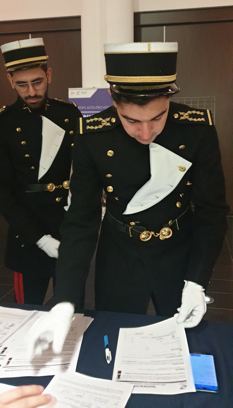 Notre stand, tenu par Louise Geoffroy, Arthur Godart et Paul-Henri Oltra Nayl a permis aux diplômés qui le souhaitaient d’adhérer à Mines Saint-Etienne Alumni et de recevoir, en cadeau de bienvenue, une lampe de mineur.