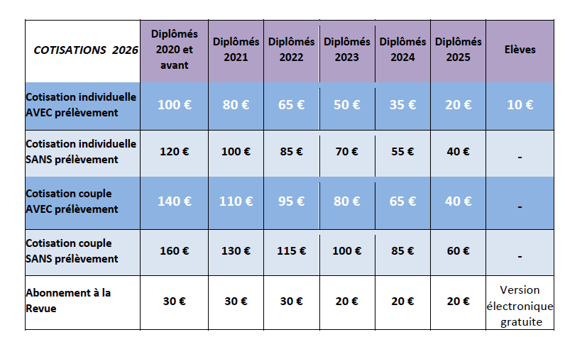 TABLEAU DES COTISATIONS 2026