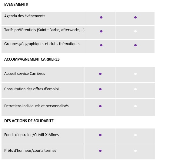 - Développer notre présence auprès des élèves pendant leur scolarité : aides financières individuelles (prêts d'honneur, avances), subventions aux associations d'élèves (ex gala/ BDE...), témoignages et conseils d'alumni...